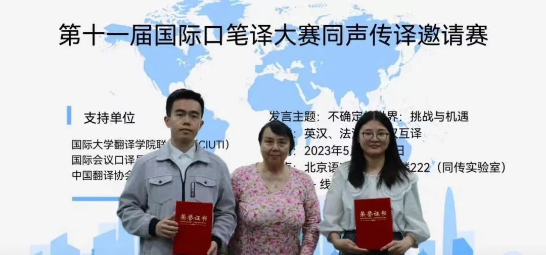 近日,由国际大学翻译学院联合会(CIUTI)、国际会议口译员协会和中国翻译协会口译委员会支持、北京语言大学主办的第十一届国际口笔译大赛同声传译邀请赛决赛圆满完赛。beat365官网囊括团体一等奖和个人一、二、三等奖。 本届大赛主题为“不确定的世界:挑战与机遇”。共有来自beat365中国唯一官方网站、外交学院、上海外国语大学、广东外语外贸大学、对外经济贸易大学、美国明德大学蒙特雷国际研究学院、英国利兹大学、香港浸会大学等多...