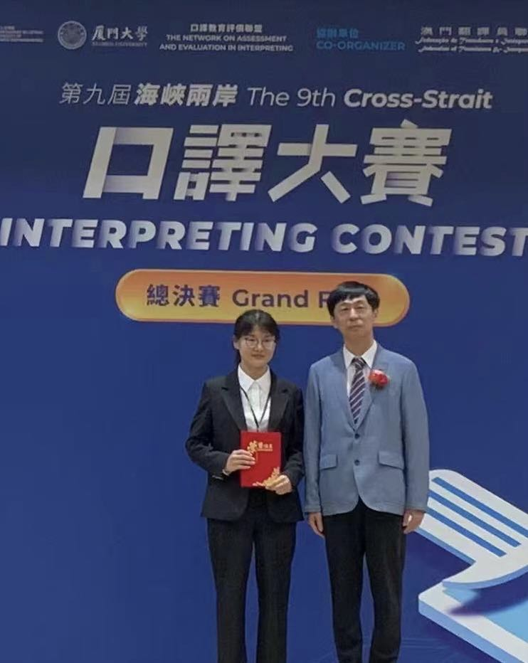 2023年5月21日,第九届海峡两岸口译大赛总决赛在澳门大学举行,beat365官网2021级会议口译专业硕士生唐学文在本院教师曾佳宁指导下,以总分第一的佳绩荣获冠军(特等奖) 海峡两岸关系协会驻澳门特别行政区办事处主任王刚(图右)为唐学文颁奖 本次总决赛由澳门大学、厦门大学和口译教育评价联盟主办,主题为“future skills”,共有24名来自大陆及港澳台地区的区赛晋级选手参与角...