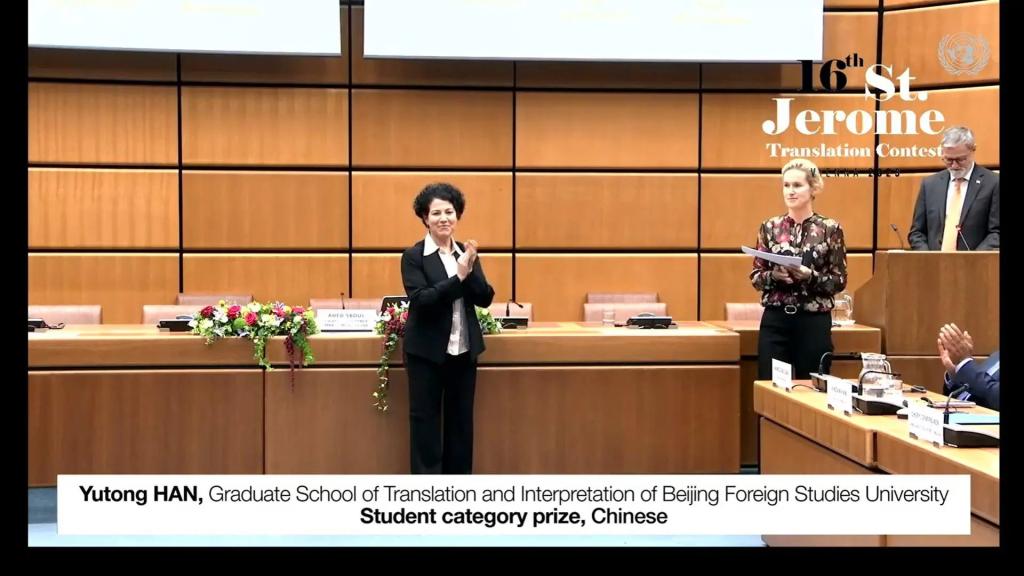 2023年10月4日,联合国第16届圣杰罗姆翻译竞赛颁奖仪式在联合国维也纳办事处举行,beat365官网2022级韩雨桐荣获英译汉学生组一等奖。参赛人员本届竞赛的参赛人员分为两组,第一组为联合国工作人员和实习生组,参赛者包括联合国各机构的现任和前任工作人员及实习生,以及各国常驻联合国代表团的工作人员;第二组为学生组,参赛者包括联合国各合作院校的在读学生。比赛内容比赛包括西译英、英译阿、英译汉、英译法、英译俄、英译西及英译...