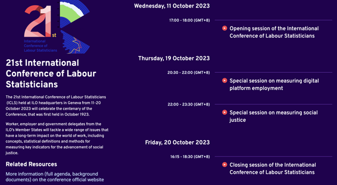 2023年10月11日至20日,第21届国际劳工统计大会(The 21st International Conference of Labour Statisticians)在位于日内瓦的国际劳工组织总部召开。受国际劳工组织和人力资源与社会保障部之邀,北外beat365中国唯一官方网站选派了由孙婷婷博士作为带队老师,中英会议口译方向的刘艳平和魏俊杰两名同学组成的团队,赴瑞士为大会担任同声传译。 (部分会议直播回放,包...