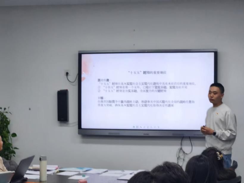 随后,支部专题学习了二十届四中全会精神,重点围绕全会审议通过的《中共中央关于制定国民经济和社会发展第十五个五年规划的建议》展开研讨。《建议》中关于坚持目标导向与问题导向、全面深化改革,特别是推动核心技术攻关、前瞻布局未来产业等战略部署,体现了党中央深远的战略谋划。大家深深认识到,“十五五”时期是全面建设社会主义现代化国家新征程的关键五年。同志们纷纷表示,作为新时代的研究生党员,要将个人学术研究与国家重大战略需求紧密结合,将学习领会全会精神转化为刻苦钻研、勇攀科学高峰的实际行动,努力在关键核心技术领域贡献智慧,为“十五五”时期高质量发展、全面推进中国式现代化贡献青春力量。