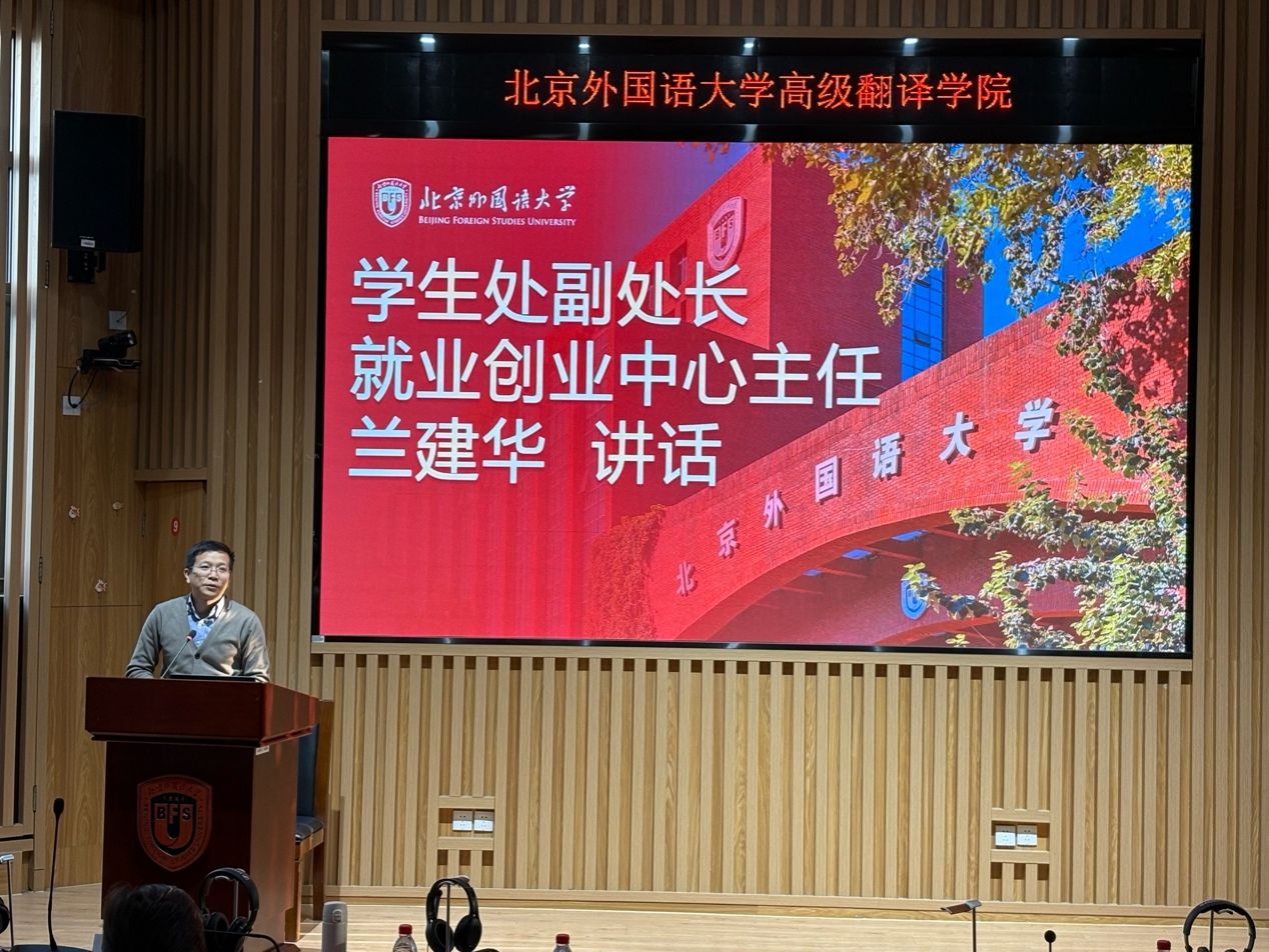 学生处副处长、就业中心主任兰建华对项目的启动表示祝贺与支持,用最新数据为在场师生描摹“严峻大环境”与“王牌小环境”并存的就业图景。就业中心将把高翻学院此次探索作为标准,在全校复制推广,让用人单位、校友导师、学院和学生四方共赢,真正把“协同”二字落到薪资、落到岗位、落到高质量发展。