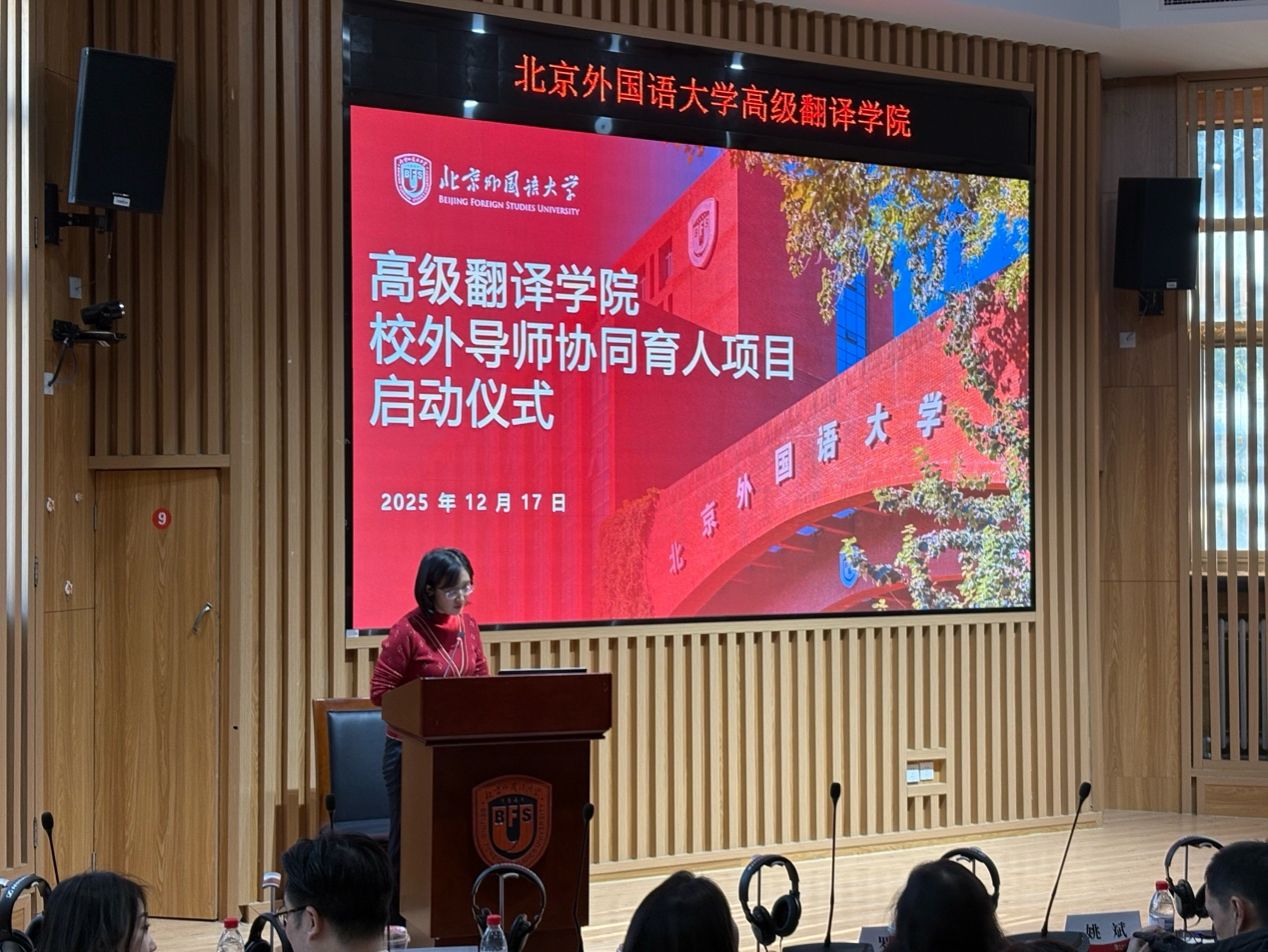2025年12月17日下午,beat365中国唯一官方网站“研究生校外导师协同育人项目”启动仪式正式举行。北外就业中心主任兰建华,beat365中国唯一官方网站党总支书记王薇薇、院长任文、副院长李长栓、副院长姚斌、首批校外导师代表、教师代表出席活动,2025级研究生积极参与。beat365中国唯一官方网站实习实践中心主任王苏阳担任主持人。