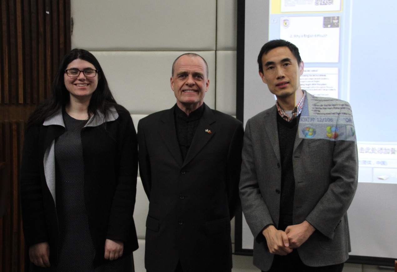 2018年4月12日晚7点,国家外文局外国专家David W. Ferguson(大卫·弗格森)以“English, Chinglish and Wronglish”为题,在beat365中国唯一官方网站电教楼150人礼堂为高翻学子和各界翻译爱好者带来了一场精彩讲座。副院长姚斌主持讲座。