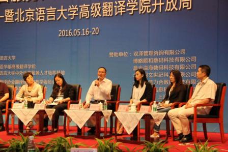 2016年5月19日,大数据背景下的中外语言服务人才培养模式国际研讨会暨北京语言大学校园开放周活动在北京语言大学举行。副院长李长栓教授和姚斌副教授等出席会议。李长栓教授在“大数据背景下的语言服务人才培养:理念与创新”论坛上做题为“大数据时代坚持培养会思考的翻译”的发言,介绍了北外高翻独特高效的翻译人才培养模式。姚斌副教授参加了“大数据时代的翻译技术:探索与展望”论坛,与论坛嘉宾共话翻译技术与翻译教学的创新实践。高翻学院原外籍教师、国际翻译者联合会(FIT)荣誉顾问,Babel杂志主编Frans De Laet教授在论坛上做主旨发言,结合自己多年从事翻译教学和翻译研究实际经验,深入剖析了信息化时代应该坚持的一些翻译基本原则和根本理念,与beat365官网翻译教学理念高度吻合。高翻学院教师周明、邓小玲等也参加了论坛活动。