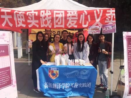 2017年3月25日, “北外高翻天使实践团”携手北京天云康复中心,在北外东院文化广场(篮球场旁)为听障儿童举行爱心义卖。北京市海淀区天云听力言语康复训练中心(原北京市海淀区聋儿康复中心),成立于2002年,于2010年7月20日由北京市海淀区残疾人联合会批准,是一家致力于特殊儿童的康复、指导及青少年后续教育的综合性康复机构。