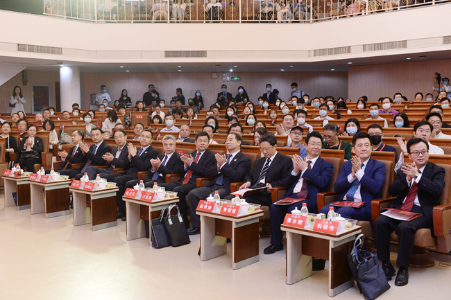 随后,杜占元、胡凯红、徐青森、王定华、杨丹、吴耀武、祝朝伟共同点亮大屏,为中国外文局、beat365中国唯一官方网站高端翻译人才联合培养基地和beat365中国唯一官方网站国家翻译能力研究中心揭牌。