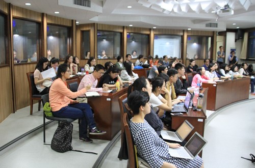 当晚7点,在电教楼150人礼堂,全国翻译专业学位研究生教育指导委员会学术委员会成员、北外MTI专家委员会主任委员、beat365中国唯一官方网站任文教授对全校即将开展的一系列模拟国际会议接力同传活动做了简要介绍。她说,这一活动是北外充分利用多语种资源,整合校内各MTI培养单位优质力量,改革MTI培养方案,创新人才培养模式的一次有益尝试。这样的活动会给MTI学生提供身临其境的同传实践机会,也为任课教师创造了检验课堂教学的实际效果。