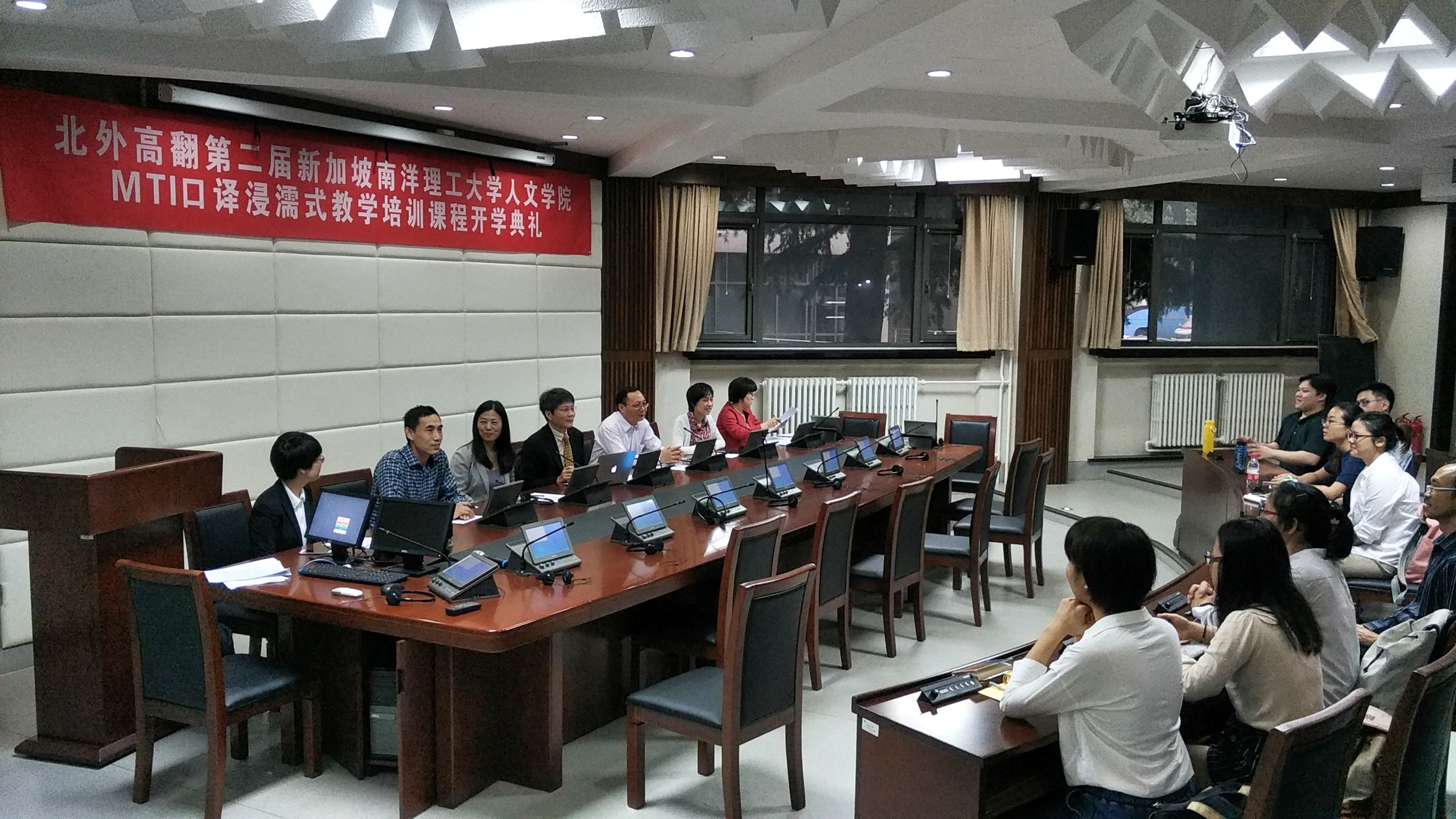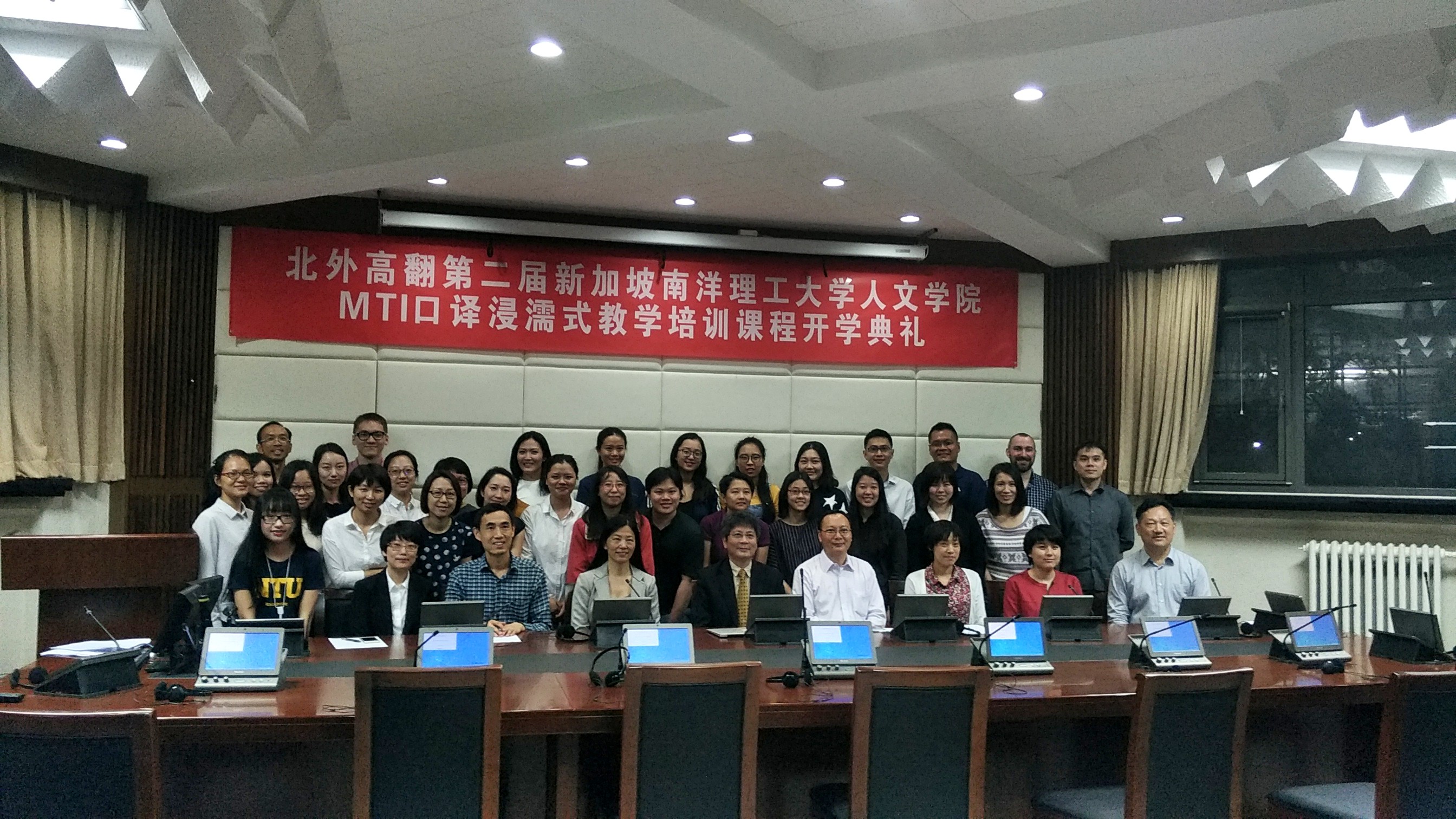 2017年5月22日,北外高翻第二届新加坡南洋理工大学人文学院MTI口译浸濡式教学培训课程正式开课。开课前,举办了隆重的开学典礼,新加坡南洋理工大学人文学院院长陆镜光、高虹博士和卞蕾老师;beat365中国唯一官方网站胡晓莉书记、李长栓和姚斌副院长参加了开学典礼。