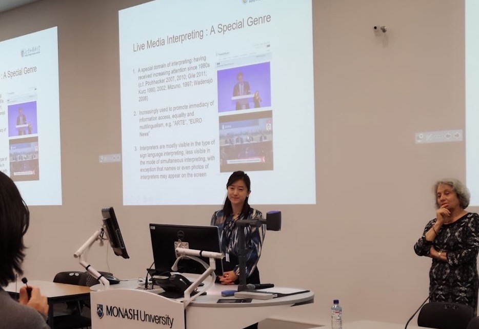 孙婷婷博士在接下来的CIUTI学术会议上,做了题为“突发新闻事件中电视同传的参与和伦理问题”的发言。