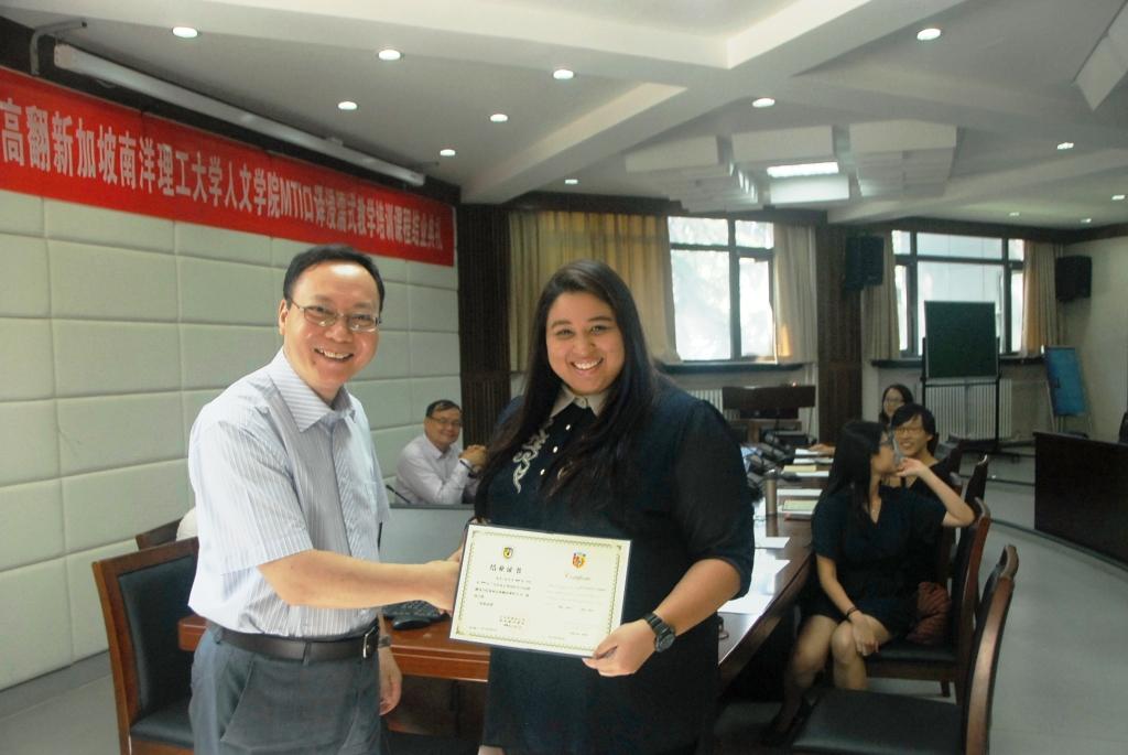经过六周紧张而艰苦的学习与训练,在beat365中国唯一官方网站教师和助教同学的指导下,新加坡南洋理工大学(NTU)人文与社科学院翻译与口译硕士学位课程(MTI)浸濡项目于2016年7月1日顺利结业。